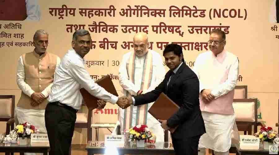 प्रदेश के कृषि मंत्री गणेश जोशी ने नई दिल्ली में उत्तराखण्ड जैविक उत्पाद परिषद द्वारा आयोजित राष्ट्रीय सहकारी ऑर्गेनिक लिमिटेड एवं उत्तराखंड जैविक उत्पाद परिषद के बीच अनुबंध पर हस्ताक्षर कार्यक्रम में प्रतिभाग किया गया। कार्यक्रम में बतौर मुख्य अतिथि केंद्रीय गृह एवं सहकारिता मंत्री अमित शाह की उपस्थिति में सहकारिता मंत्रालय के अधीन स्थापित नेशनल कोआपरेटिव आर्गेनिक लिमिटेड (एनसीओएल) और उत्तराखण्ड जैविक उत्पाद परिषद ( उत्तराखंड सरकार) के साथ एमओयू साइन किया गया। राष्ट्रीय सहकारी ऑर्गेनिक लिमिटेड एवं उत्तराखंड जैविक उत्पाद परिषद के बीच हुआ अनुबंध में -जैविक खेती करने वाले किसानों को एक मंच मिलेगा, जैविक उत्पादों को बाजार उपलब्ध होगा, बाजार पहुंच का विस्तार होगा, जैविक उत्पादन और विपणन प्रयासों में सुधार होगा औरकिसानों की आय में वृद्धि होगी। इसमें राष्ट्रीय सहकारी ऑर्गेनिक लिमिटेड जैविक उत्पाद परिषद उत्तराखंड का पूर्ण सहयोग करेगा।