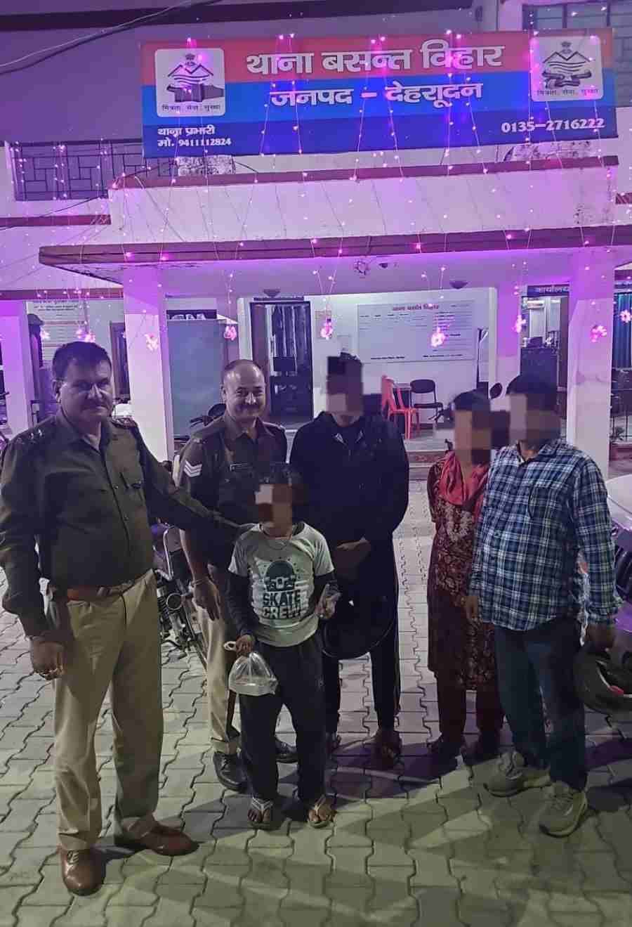 थाना बसंत विहार पर एक व्यक्ति निवासी न्यू वसंत विहार एनक्लेव द्वारा सूचना दी की उनका भांजा उम्र 10 वर्ष घर से कहीं चला गया है प्राप्त सूचना पर तत्काल टीम गठित कर वर्तमान में प्रचलित ऑपरेशन स्माइल के तहत पुलिस मुख्यालय से प्राप्त निर्देशों के क्रम में वरिष्ठ पुलिस अधीक्षक देहरादून द्वारा बालक की यथाशीघ्र सकुशल बरामदगी हेतु आवश्यक निर्देश दिए गए। जिसके अनुपालन में पुलिस टीम द्वारा बालक के घर के आसपास आने जाने वाले लोगों से गुमशुदा बालक की फोटो दिखाकर पता लगाने का प्रयास किया तथा आसपास लगे सीसीटीवी फुटेजों की सहायता से बालक को मोहित नगर से सकुशल बरामदकर परिजनों के सुपुर्द किया गया।