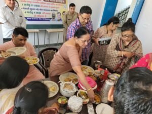 सभी लोग अपने अपने घर से अलग अलग व्यंजन बनाकर हरबंस कपूर बलिका इंटर कॉलेज पंहुचे थे। सभी लोग एक साथ भोजन का आनंद लेते दिखे।