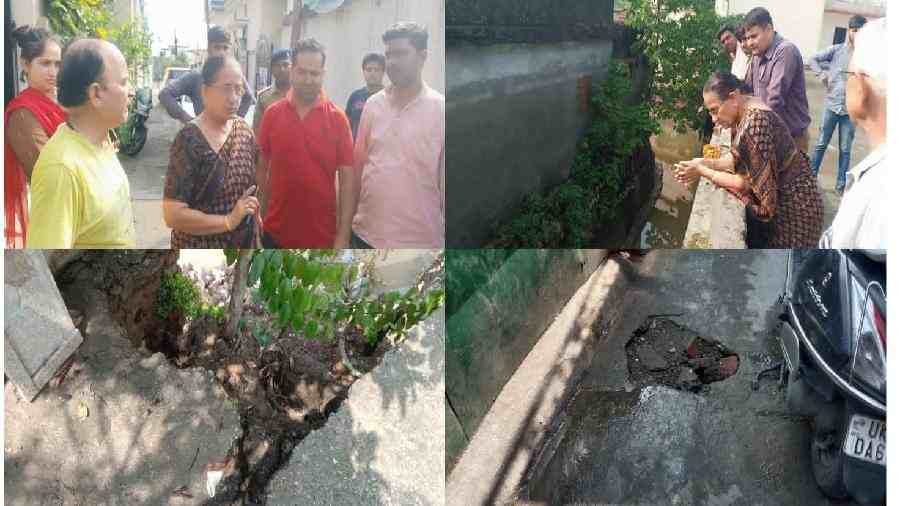 कैन्ट विधायक श्रीमति सविता कपूर ने आज वार्ड नम्बर 35 श्री देवसुमन नगर में अतिवर्षा के कारण हुए नुकसान का जाएजा लिया। क्षेत्रीय जनप्रतिनिधि जी,एम,एस,मंडल मीडिया प्रभारी विकास बेनवाल ने मित्रलोक कालोनी में सादिक अहमद के घर साथ लगा छोटी बिंदाल का पुश्ता गिरने एंव जवाहर कालोनी में गली में छोटी बिन्दाल के तेज बहाव के कारण एक बड़ा गड्ढे बन जाने की सूचना फोन पर दी थी। विधायक सविता कपूर ने तुरंत सिचाई विभाग के अधिकारियों को मौके पर बुलाकर जल्द समाधान कराने को निर्देशित किया साथ ही लोगों से अपील भी की नदीं नालों के पुश्ते के ऊपर अतिक्रमण ना करें।