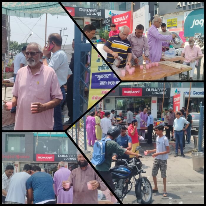 आज दिनांक 18/6/2024 को श्री राम मंदिर समिति दीपलोक कालोनी द्वारा बढती गरमी के प्रकोप को देखते हुए मीठा पेयजल (छबिल) वितरण किया गया राम मंदिर समिति सदस्यों द्वारा प्रातः 10:00 बजे चकराता रोड स्थित सिंघल ग्रेनाइट पर एकत्र होकर