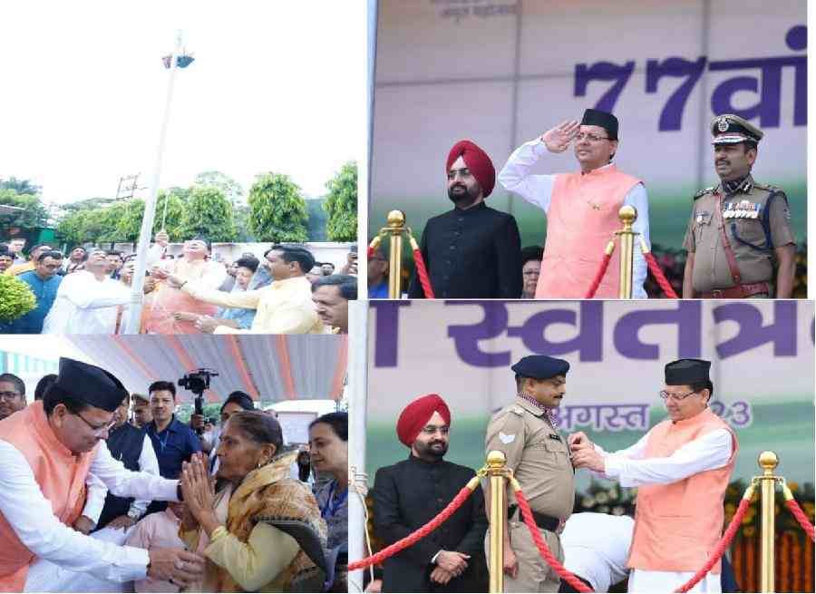 मुख्यमंत्री पुष्कर सिंह धामी ने 77वें स्वतंत्रता दिवस के अवसर पर परेड ग्राउण्ड देहरादून में राज्य के मुख्य कार्यक्रम में ध्वजारोहण किया। मुख्यमंत्री ने इस अवसर पर स्वतंत्रता संग्राम सेनानियों के परिजनों को सम्मानित किया एवं फोटो प्रदर्शनी का अवलोकन भी किया। कार्यक्रम के दौरान मुख्यमंत्री ने 05 पुलिस अधिकारियों एवं कर्मचारियों को विशिष्ट कार्यों के लिए मुख्यमंत्री सराहनीय सेवा पदक प्रदान किया। हेड कांस्टेबल श्री चमन कुमार, पुलिस अधीक्षक अमित श्रीवास्तव, पुलिस अधीक्षक श्रीमती रेखा यादव, अपर पुलिस अधीक्षक श्रीमती सरिता डोभाल एवं आरक्षी धीरेन्द्र सिंह चौहान को मुख्यमंत्री सराहनीय सेवा पदक प्रदान किया गया।