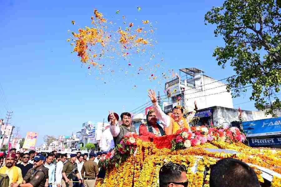 मुख्यमंत्री पुष्कर सिंह धामी ने मंगलवार को बाजपुर इण्टर कॉलेज में आयोजित लाभार्थी सम्मान समारोह में प्रतिभाग कर बाजपुर तहसील कार्यालय से इण्टर कॉलेज बाजपुर तक रोड शो किया। रोड शो के दौरान जगह-जगह पर विभिन्न संस्थाओं के लोक कलाकारों एवं मातृशक्ति द्वारा उनका गीत, नृत्य, पुष्प वर्षा से स्वागत किया। इस दौरान मुख्यमंत्री ने आम जन पर पुष्प वर्षा करते हुए बड़ी संख्या में मौजूद जनसैलाब का अभिवादन कर आभार जताया।