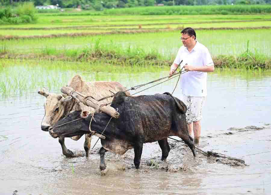 खटीमा के नगरा तराई क्षेत्र में उत्तराखंड के मुख्यमंत्री पुष्कर सिंह धामी ने शनिवार को अपने खेत में धान की रोपाई कर किसानों के परिश्रम, त्याग और समर्पण को नमन किया। उन्होंने कहा कि खेतों में उतरकर पुराने दिनों की यादें ताजा हो गईं। मुख्यमंत्री ने कहा कि अन्नदाता न केवल हमारी अर्थव्यवस्था की रीढ़ हैं, बल्कि वे हमारी संस्कृति और परंपराओं के संवाहक भी हैं।