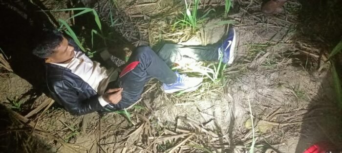 बदमाश के पैर में लगी है गोली।दूसरा बदमाश जंगल में भागा।
