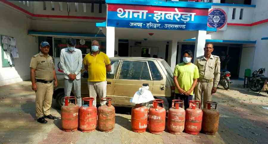 ग्रामीण क्षेत्र में गैस चोरी की मिल रही घटनाओं पर अंकुश लगाने के लिए एसएसपी हरिद्वार अजय सिंह द्वारा दिए गए स्पष्ट दिशा निर्देशों के क्रम में थाना झबरेड़ा व सीआईयू रुड़की की संयुक्त पुलिस टीम ने सावधानीपूर्वक कार्रवाई करते हुए ग्राम सढौली में स्थित डीलक्स ढाबे पर गैस टैंकर से गैस निकालकर घरेलू गैस सिलेंडरों में भरने पर मौके से 03 अभियुक्तों को दबोचते हुए 08 घरेलू सिलेंडर, 01 नोजल मय पाइप, 01 टैंकर कैप्सूल व अल्टो कार बरामद की गई।