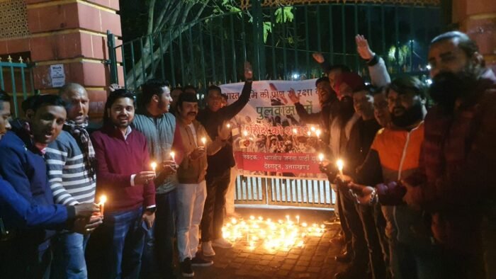 प्रदेश मंत्री युवा मोर्चा राजेश रावत ने कहा कि आज पुलवामा हमले की चौथी बरसी है। आज ही के दिन 14 फरवरी 2019 को करीब सवा तीन बजे एक आतंकी घटना ने देश को झकझोर दिया था। आतंकियों ने जम्मू-श्रीनगर राष्ट्रीय राजमार्ग से होकर सीआरपीएफ के काफिले पर हमला कर दिया था। काफिले में अधिकतर बसें थीं जिनमें जवान बैठे थे। जैसे ही यह काफिला पुलवामा पहुंचा, तभी दूसरी तरफ से एक कार आई और काफिले की एक बस में टक्कर मार दी। कार में भारी मात्रा में विस्फोटक रखा था। टक्कर होते ही बड़ा विस्फोट हुआ और इसमें सीआरपीएफ के 40 जवान शहीद हो गए। बाद में हमारे वीर सैनिकों ने पुलवामा हमले का बदला लेते हुए दुश्मन को उसी के घर में करारा जवाब दिया। श्रद्धांजलि देने वालों में मेयर सुनील उनियाल गामा प्रदेश महामंत्री युवा मोर्चा विपुल मिनदोला, प्रदेश उपाध्यक्ष अर्चित डावर, गढ़वाल संयोजक शुभम, प्रदेश मंत्री राजेश रावत श्याम पंत, सौरभ शर्मा अनिल डबराल, अमित राणा, सागर सोनकर, चंदा उनियाल, अमोल डोभाल, सौरभ कपूर, पवन गॉड चंदन कनौजिया आशीष गुसाईं प्रवीण कुमार अंकित संजय चौधरी गौरव कनौजिया विवेक डंगवाल विपिन सेमवाल दीपक अग्रवाल आशु अनुज मिश्रा मोहित धमीजा ललित ओझा विजेंद्र पाल वीरेंद्र रावत आदि कार्यकर्ता मौजूद रहे