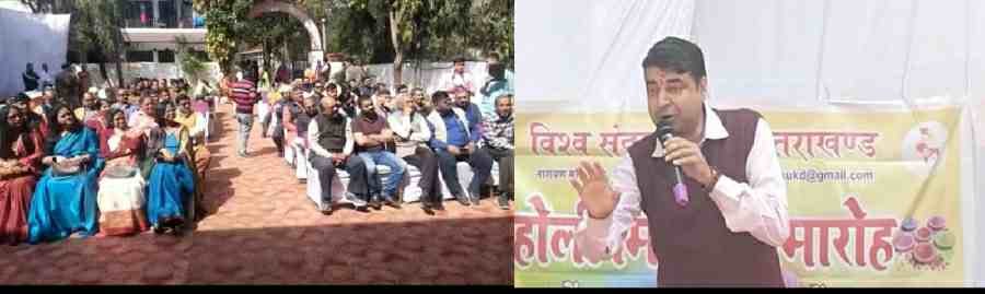 विश्व संवाद केन्द्र, देहरादून की ओर से आज नारायण मुनि भवन, राजपुर रोड, देहरादून में हर वर्ष की भाँति इस वर्ष भी ‘पत्रकार होली मिलन’ समारोह का आयोजन किया गया,इस मौके पर संजय कुमार प्रान्त सह प्रचारक प्रमुख उपस्थित रहे,कार्यक्रम का शुभारम्भ करते हुए वक्ताओं ने होली उत्सव के महत्व पर अपने विचार भी व्यक्त किए। साथ ही संजय कुमार ने कहा कि – होली रंगों, सद्भावना एवं समरसता का त्योहार है, जो समाज को जोड़ता है।