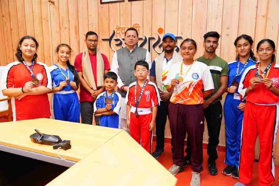 मुख्यमंत्री पुष्कर सिंह धामी से सोमवार सांय को मुख्यमंत्री आवास में देहरादून परेड ग्राउंड में आयोजित हुए अन्तर्राज्यीय और नेशनल किक बॉक्सिंग प्रतियोगिता में प्रतिभाग करने वाले खिलाडियों ने भेंट की।