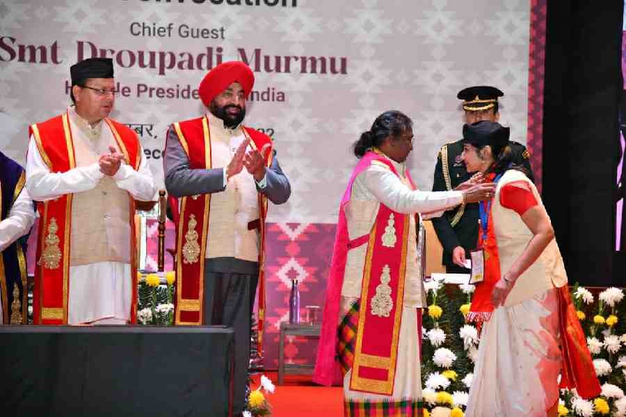 राष्ट्रपति श्रीमती द्रोपदी मुर्मु ने शुक्रवार को दून विश्वविद्यालय के तृतीय दीक्षांत समारोह में 36 मेधावी छात्र-छात्राओं को सम्मानित किया। समारोह में वर्ष 2021 के स्नातक, परास्नातक एवं पी.एच.डी के 669 विद्यार्थियों को उपाधि प्रदान की गई। स्वर्ण पदक प्राप्त करने वाले 36 विद्यार्थियों में 24 छात्राएं शामिल थीं। जिन्होंने विश्वविद्यालय के दीक्षांत समारोह की थीम ‘उभरती नारी शक्ति’ को चरितार्थ किया।