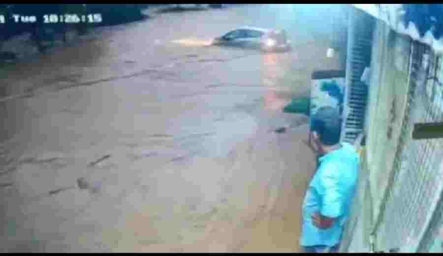 रामनगर के अलग-अलग क्षेत्र में हो रही शाम से मूसलाधार बारिश के बाद ढिकुली के पास स्थित बरसाती नाला आया उफान पर बरसाती नाले में बही कार, कार में थे 4 लोग सवार,स्थानीय लोगो द्वारा किया गया सुरक्षित रेस्क्यू। बता दें कि रामनगर में मूसलाधार बारिश शुरू हो गई ,बारिश इतनी तेज थी, कि एकाएक नदी नाले भी उफान पर आ गए,वहीं नेशनल हाईवे 309 पर स्थित ढिकुली के पास सीआरबीआर के पास से बतसाती नाला(मवाड़ी) भी उफान पर आ गया। जिससे रामनगर से रानीखेत की ओर जा रही एक कार इस बरसाती नाले में बह गई, बताया जा रहा है कि कार में चालक सहित 4 लोग थे सवार, चालक ने उफनते नाले में अपनी कार डाल दी, जिससे कार उफनता नाला अपने साथ बहा ले गया,काफी दूर तक बहते हुए चली गई गनीमत यह रही कि आसपास स्थित रिसोर्ट में कार्यरत कर्मचारियों द्वारा जान जोखिम में डालकर कार में सवार चार लोगों को रेस्क्यू कर लिया गया।