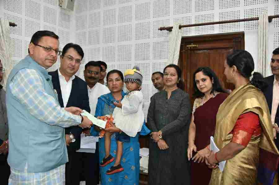 मुख्यमंत्री पुष्कर सिंह धामी ने कांस्टेबल स्वर्गीय प्रदीप कुमार की पत्नी श्रीमती दीपमाला को मुख्यमंत्री कैम्प कार्यालय में 50 लाख रुपए का चेक सौंपा। यह चेक एचडीएफसी बैंक की ओर से कांस्टेबल स्वर्गीय प्रदीप कुमार की पत्नी को दिया गया। प्रदीप कुमार का वेतन अकाउंट एचडीएफसी बैंक में संचालित था, जबकि उनका कोई अंशदान भी नहीं कट रहा था।