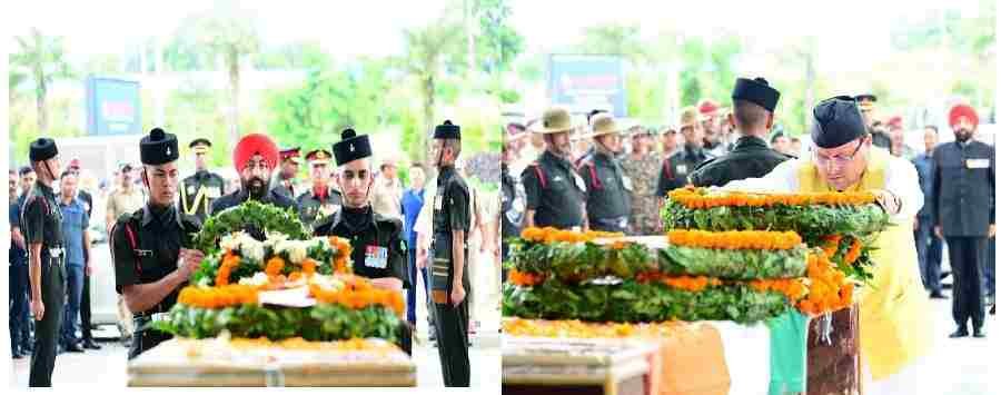 डोडा, जम्मू कश्मीर में आतंकवादियों से मुठभेड़ के दौरान शहीद हुए 48 राष्ट्रीय राइफल के कैप्टन दीपक सिंह का पार्थिव शरीर गुरुवार को जौलीग्रांट एयरपोर्ट देहरादून पहुंचा, जहां राज्यपाल लेफ्टिनेंट जनरल गुरमीत सिंह (से नि) एवं मुख्यमंत्री पुष्कर सिंह धामी ने उनके पार्थिव शरीर पर पुष्प चक्र अर्पित किए। उन्होंने ईश्वर से पुण्यात्मा को अपने श्रीचरणों में स्थान एवं शोकाकुल परिजनों को दुःख सहने की शक्ति प्रदान करने की कामना की।