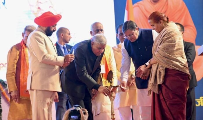 उपराष्ट्रपति जगदीप धनखड़, डॉ. (श्रीमती) सुदेश धनखड़ के साथ आज अपने एकदिवसीय दौरे पर हरिद्वार पहुंचे और वहां गुरुकुल कांगड़ी विश्वविद्यालय द्वारा आयोजित किये जा रहे वेद विज्ञान एवं संस्कृति महाकुंभ के उद्घाटन समारोह को मुख्य अतिथि के रूप में संबोधित किया। गुरुकुल कांगड़ी द्वारा इस महाकुंभ का आयोजन स्वामी दयानंद सरस्वती की 200वीं जयंती और स्वामी श्रद्धानंद के बलिदान दिवस में अवसर पर किया जा रहा है।